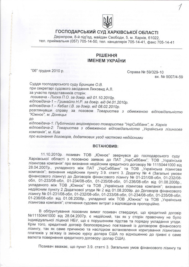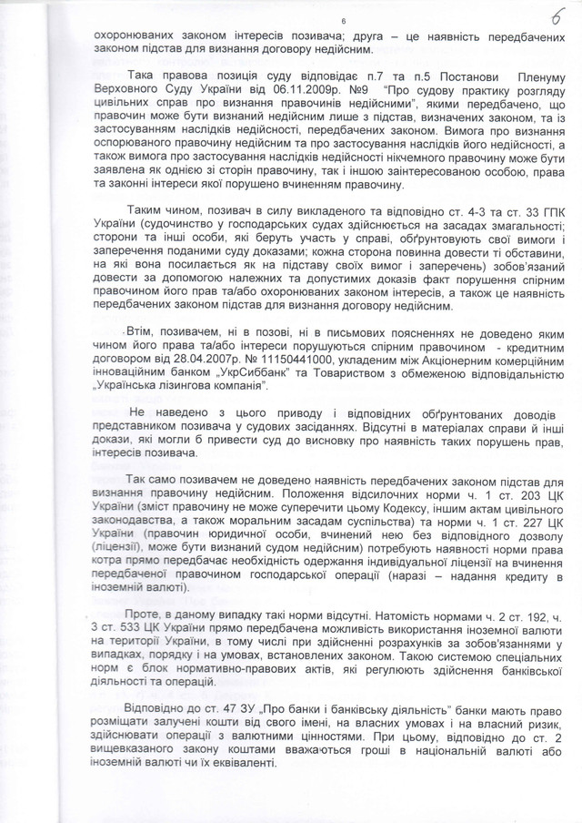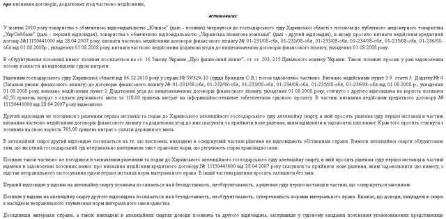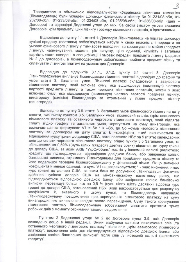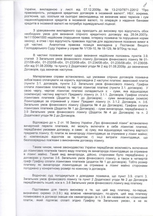 3.признан недійсним частково всі 6 договорів фінансового лізингу та додаткові угоди щодо коригування лізингового платежу з «курсової різниці» в бік збільшення;