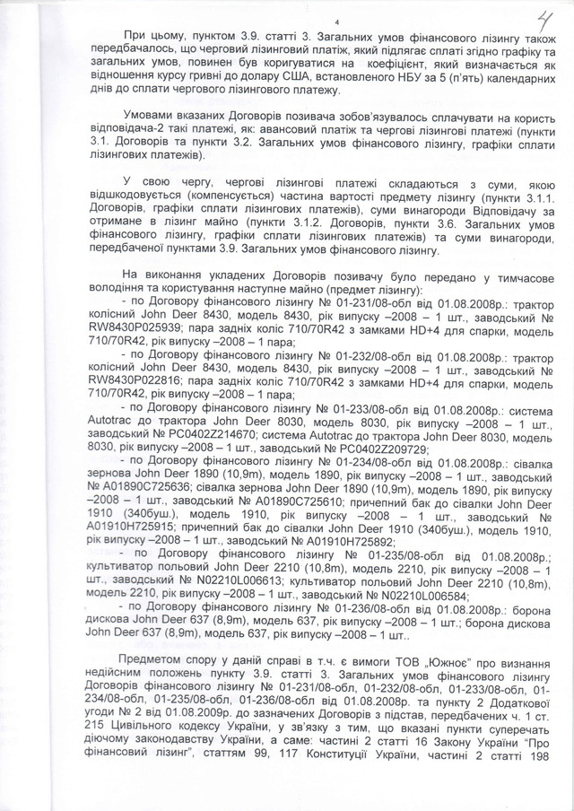 4.участь у спробах опонента забрати сільськогосподарську техніку Клієнта;
