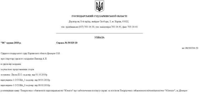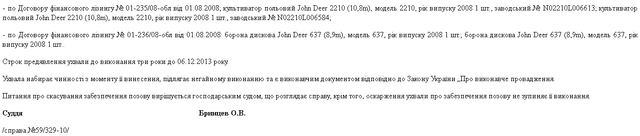 - Заборонено здійснення будь-яких інших дій, спрямованих на вилучення майна (предмета договору лізингу) від ТОВ "Південне" на користь ТОВ "Українська лізингова компанія", в тому числі вчинення виконавчих написів щодо повернення предмета лізингу та проведення стягнення на підставі виконавчого напису нотаріуса.